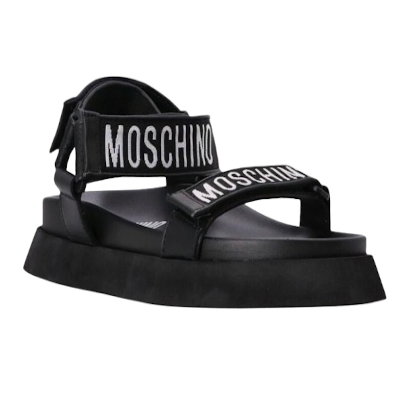 Introducing the FUSS BET 40 Flat Sandals by Moschino, designed exclusively for men. These stylish sandals are perfect for any casual occasion. Crafted with the finest materials, they offer both comfort and durability. Step out in style with these trendy flat sandals that effortlessly combine fashion and functionality.