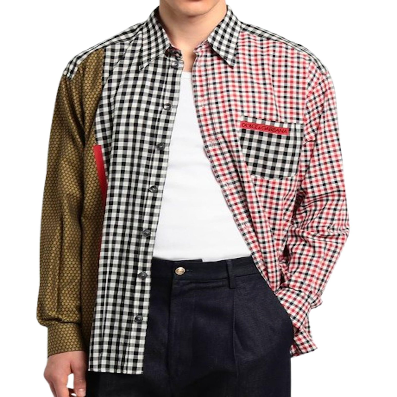 This is Dolce & Gabbana long sleeve regular-fit shirt with jacquard, woven and checked print and 3D printed ‘Dolce & Gabbana’ brand logo on left chest pocket.
