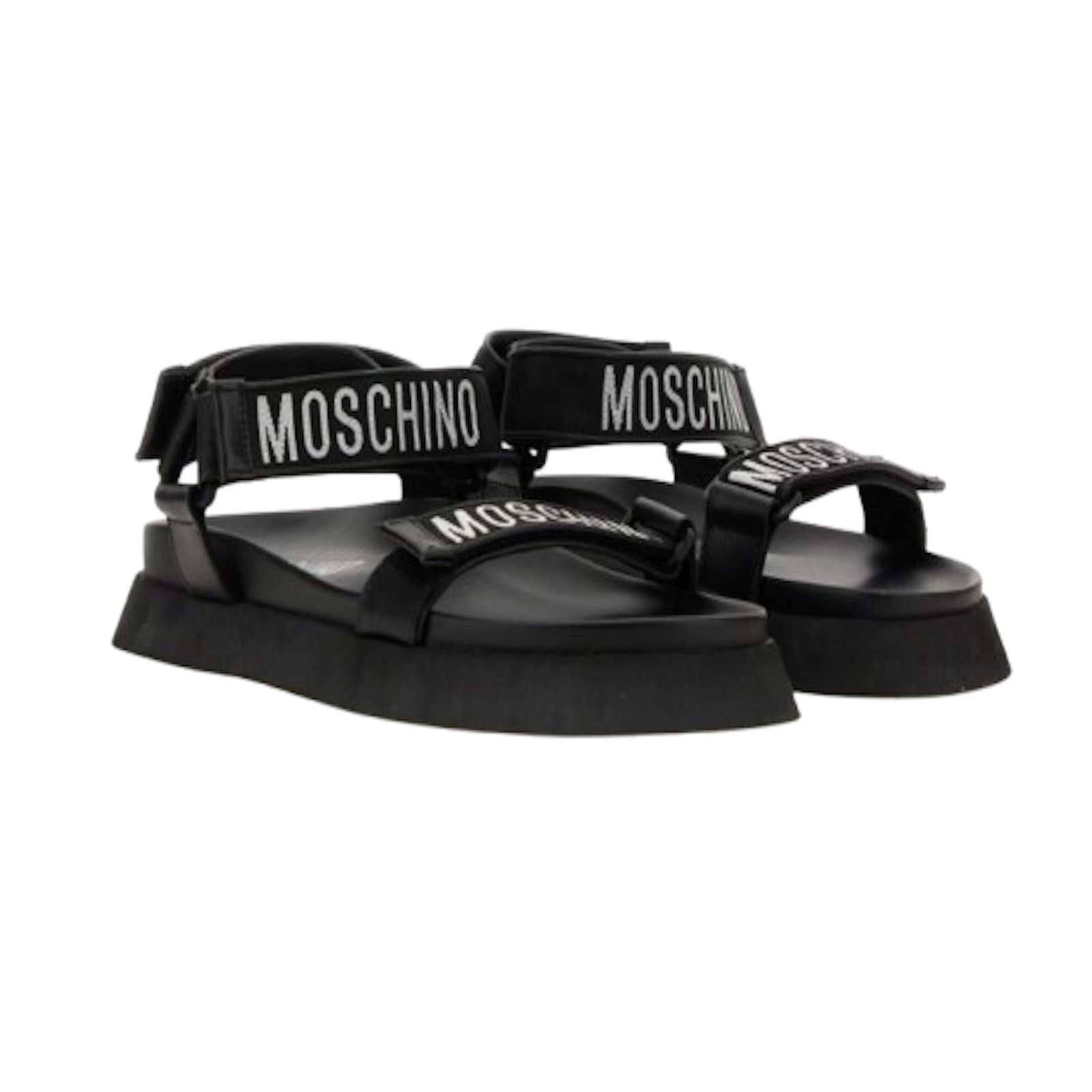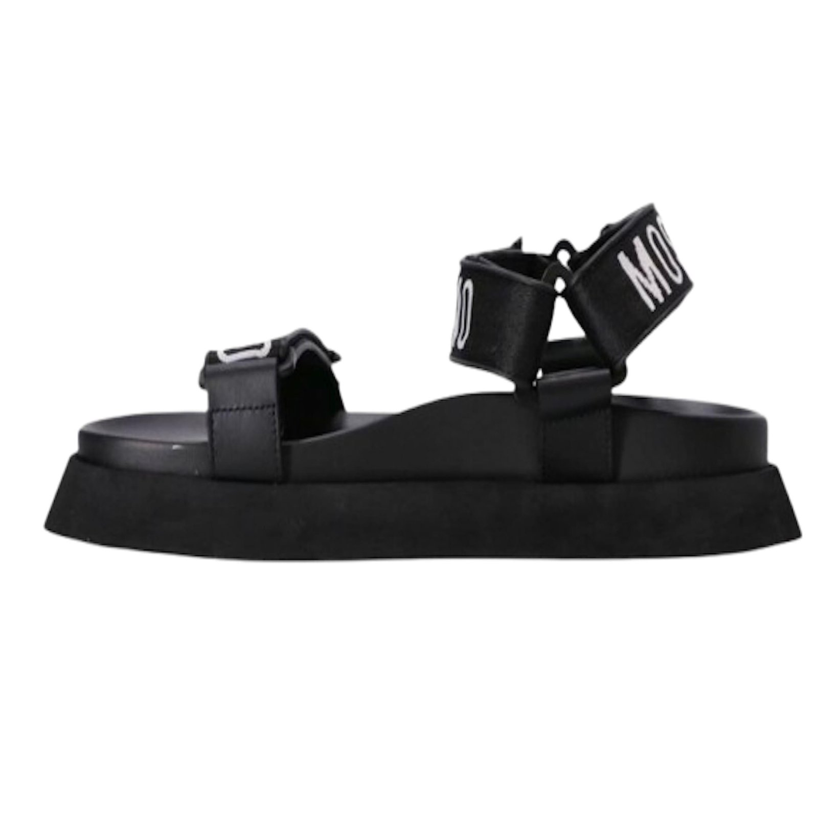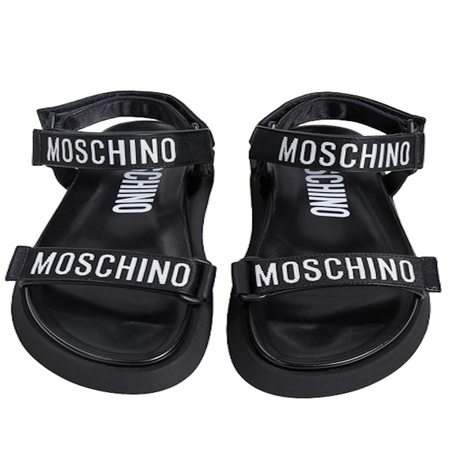 Introducing the FUSS BET 40 Flat Sandals by Moschino, designed exclusively for men. These stylish sandals are perfect for any casual occasion. Crafted with the finest materials, they offer both comfort and durability. Step out in style with these trendy flat sandals that effortlessly combine fashion and functionality.